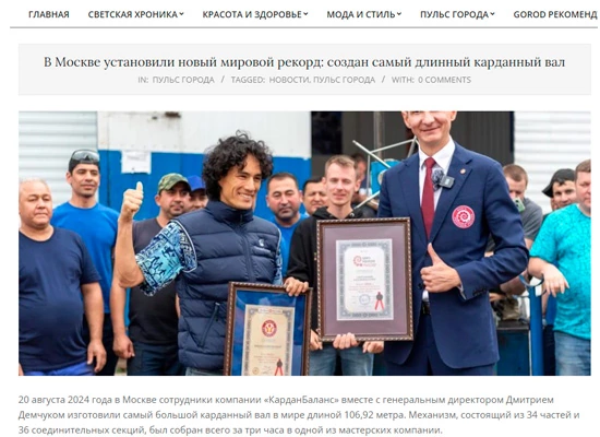 В Москве установили новый мировой рекорд: создан самый длинный карданный вал